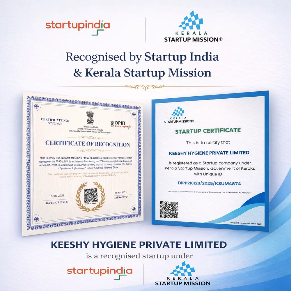 Plowsh, operated by Keeshy Hygiene Private Limited, is officially recognised as a startup by the Department for Promotion of Industry and Internal Trade (DPIIT), Government of India, and registered under the Kerala Startup Mission (Government of Kerala).