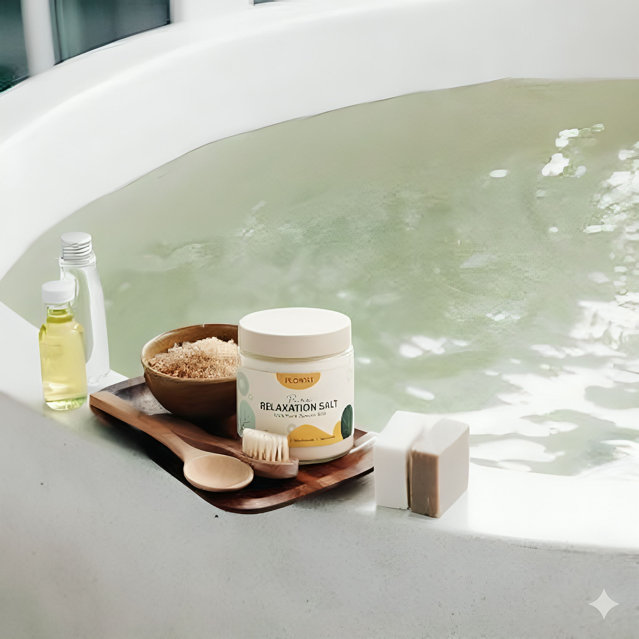 Pre-sleep bath ritual. The warm-to-cool transition releases sleep hormones, while magnesium activates calming neurotransmitters.
